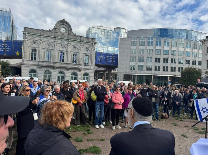 Quelque 150 personnes se sont rassemblées mercredi après-midi sur la place du Luxembourg, à Bruxelles, pour réclamer le retour des otages israéliens détenus par le Hamas depuis le 7 octobre 2023.