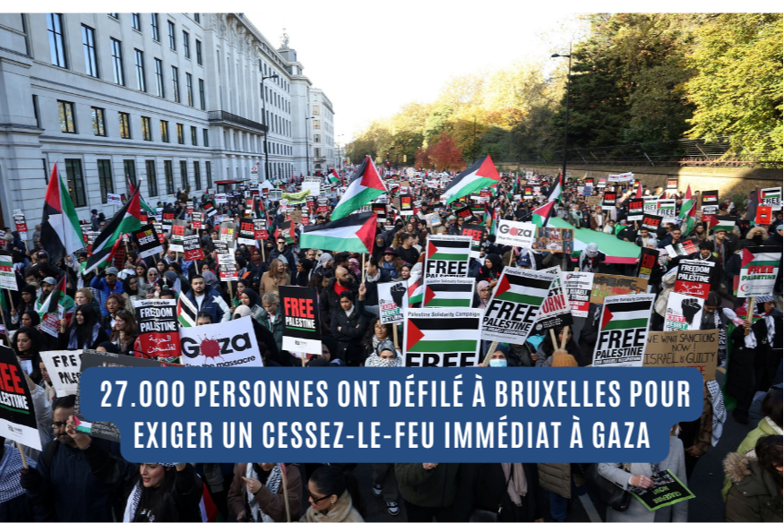 Quelque 27.000 personnes, selon la police bruxelloise, ont défilé dimanche après-midi dans les rues de la capitale pour exiger un cessez-le-feu immédiat à Gaza.