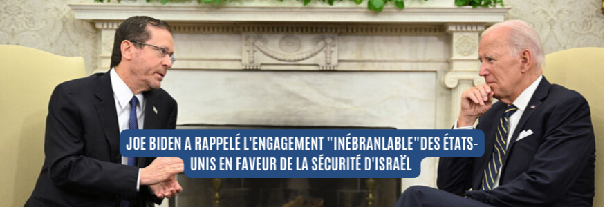Joe Biden qui recevait Isaac Herzog à la Maison Blanche mardi a rappelé l'engagement "inébranlable"des États-Unis en faveur de la sécurité d'Israël et il s'est engagé, à ce que l'Iran ne parvienne "jamais" à se doter d'une arme nucléaire.