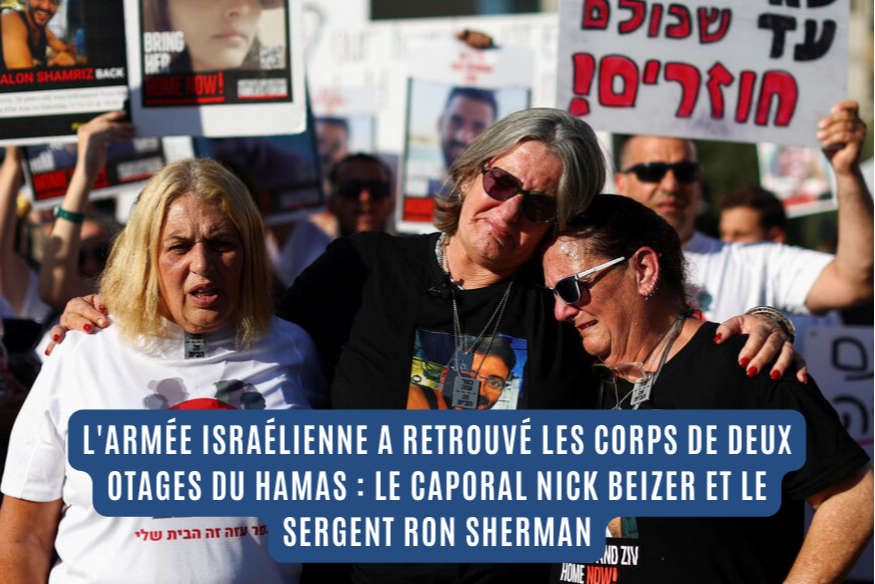 L'armée israélienne a retrouvé, à Gaza, les corps de deux otages du Hamas : le caporal Nick Beizer et le sergent Ron Sherman.