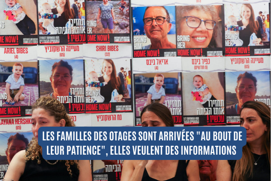 Les familles d'otages retenus dans la bande de Gaza ont prévenu jeudi soir à Tel-Aviv, elles sont arrivées "au bout de leur patience", elles veulent des informations et exigent d'être reçues par le gouvernement au plus vite.