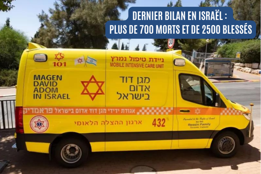 Dernier bilan en Israël on a dépassé les 700 morts et les 2500 blessés. Parmi eux, 23 se trouvent dans un état critique, 345 dans un état grave, 462 dans un état modéré, 1175 sont légèrement blessés, 56 représentent des cas d'anxiété et 209 subissent encore des examens.