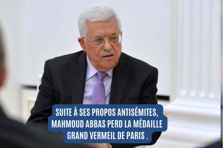 Mahmoud Abbas ne pourra plus se prévaloir de la médaille Grand Vermeil de Paris, plus haute distinction de la capitale.
