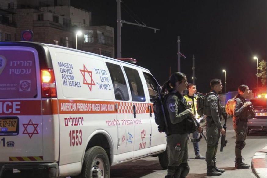 Selon les services d'urgence du Magen David Adom, deux hommes de 24 et 28 ans sont dans un état modéré, tandis qu'un homme de 24 ans et un autre de 59 ans sont légèrement atteints.
