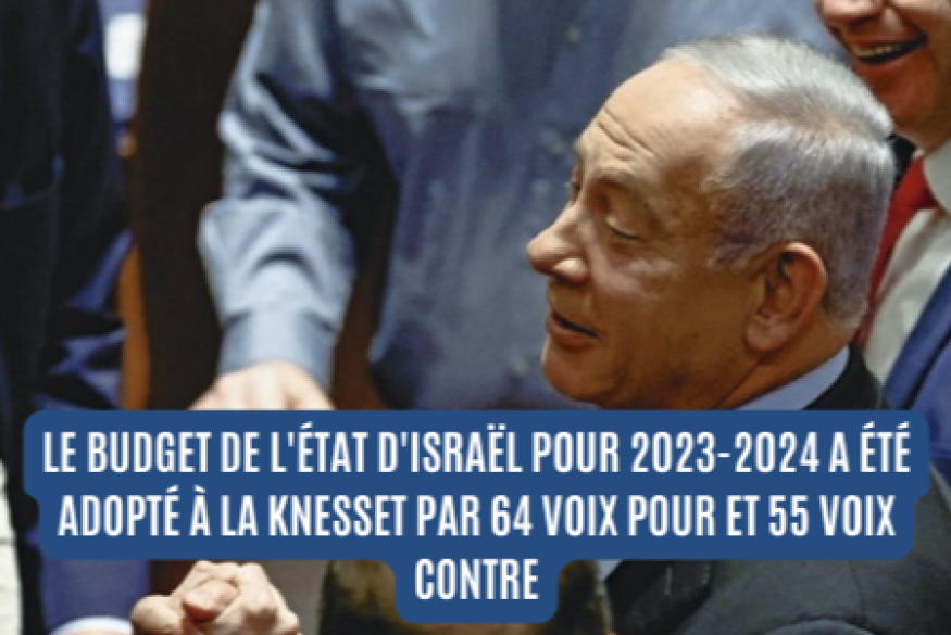 Le budget national d'Israël pour 2023-2024 a été adopté en deuxième et troisième lecture à la Knesset tôt ce mercredi matin par 64 voix pour et 55 voix contre.