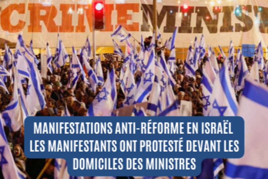 La journée de jeudi a été marquée par de très nombreuses manifestations anti-réforme dans tout Israel, les manifestants ayant notamment bloqué les autoroutes et manifesté devant les domiciles de nombreux ministres.