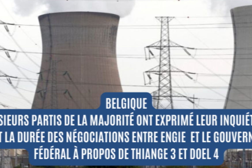 En Belgique, plusieurs partis de la majorité ont exprimé mardi leur inquiétude devant la durée des négociations entre Engie et le gouvernement fédéral à propos de la prolongation des réacteurs de Tihange 3 et Doel 4.