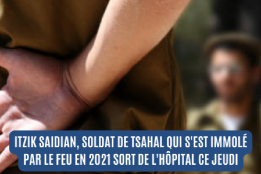 Après 2 ans à l’hôpital, Itzik Saidian, 28 ans, ce soldat qui s'est immolé par le feu en avril 2021 devant les bureaux du ministère de la Défense devrait sortir ce jeudi et organiser une fête de libération pour remercier le personnel médical.