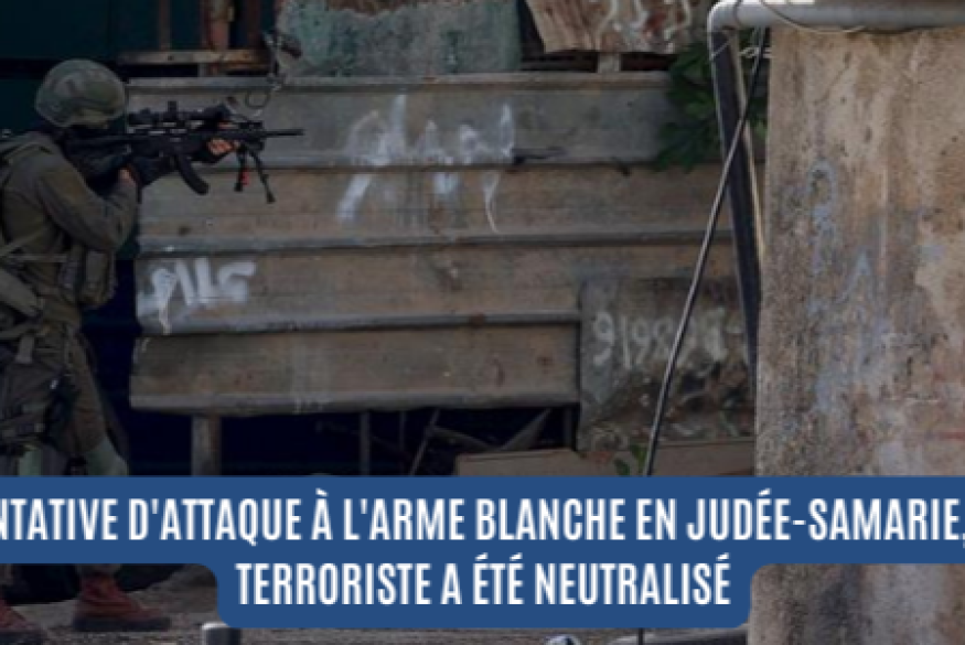 En Judée-Samarie une tentative d'attaque à l'arme blanche contre les forces de sécurité israéliennes a eu lieu hier au carrefour Gitti Avishar, près d'Ariel.
