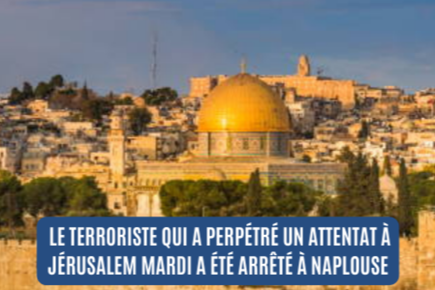 Le terroriste qui a perpétré un attentat à Jérusalem mardi matin a été arrêté, annonce Tsahal dans un communiqué ce mercredi matin.