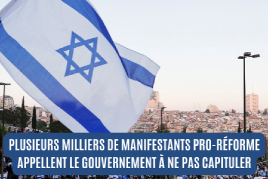 Jeudi soir à Tel Aviv plusieurs milliers de manifestants pro-réforme judiciaire ont appelé le gouvernement à ne pas "capituler" dans les négociations sur la réforme