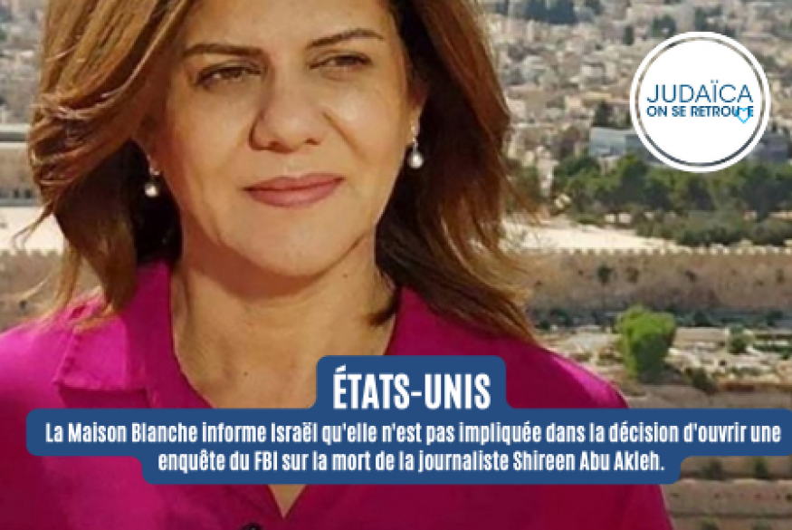 USA toujours, la Maison Blanche a informé les responsables israéliens qu'elle n'était pas impliquée dans l’enquête du FBI sur la mort de la journaliste Shireen Abu Akleh.