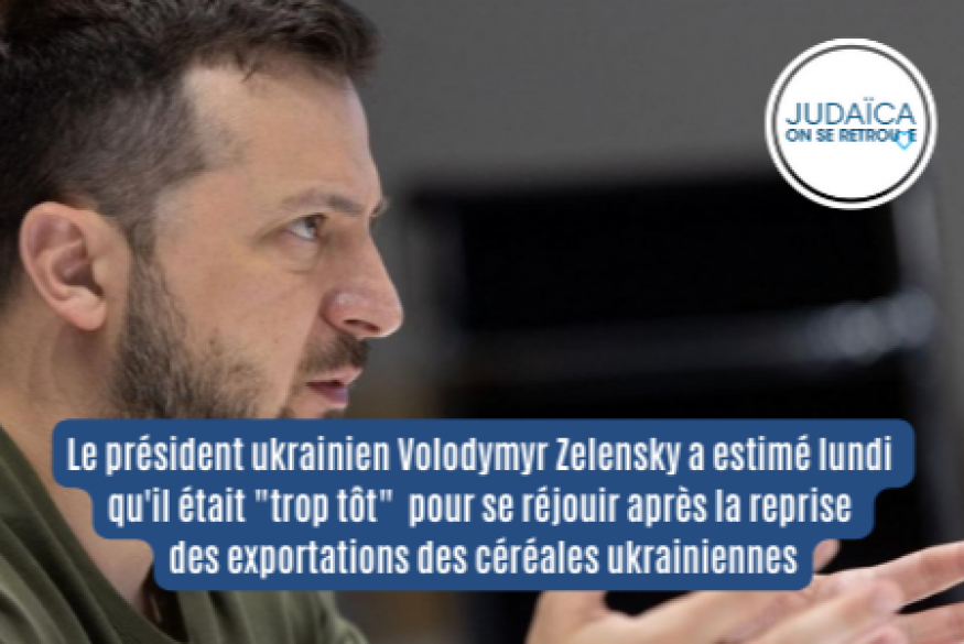 Le président ukrainien Volodymyr Zelensky a estimé lundi qu'il était "trop tôt" pour se réjouir après la reprise des exportations des céréales ukrainiennes depuis le port d'Odessa
