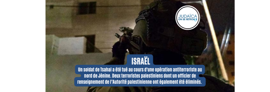 L'officier de la brigade Nahal a été tué par des tirs palestiniens lors d'une opération d'arrestation près du point de passage de Jalma, au nord de Jénine. Deux hommes armés palestiniens ont été éliminés lors d'un échange de coups de feu avec les forces de Tsahal.