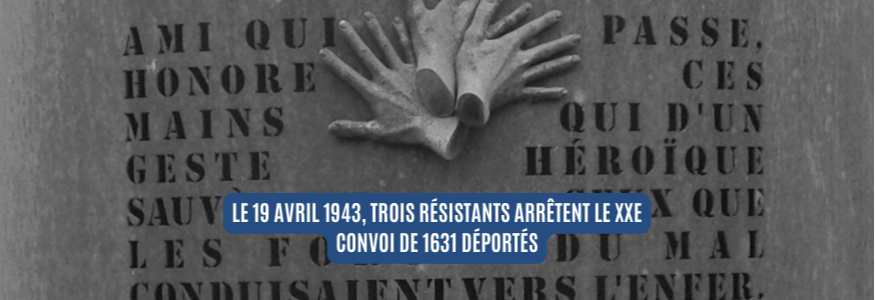 Fait unique de l'histoire de la déportation des Juifs dans l'Europe nazie : le 19 avril 1943, trois résistants arrêtent le XXe Convoi de 1631 déportés. Avant la frontière, 231 s'évadent du train : 205 retrouveront la liberté , 26 y perdront la vie.