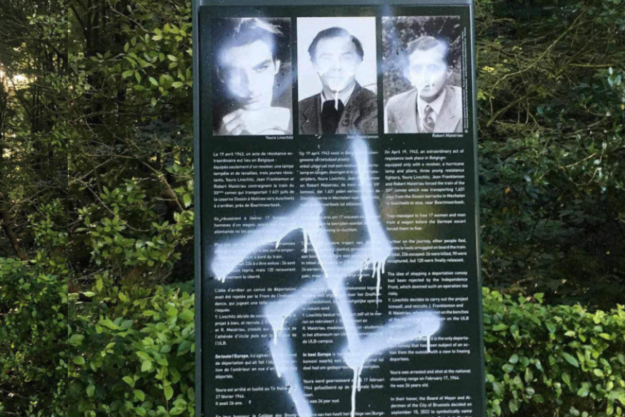 En Belgique, une centaine de personnes se sont rassemblées dimanche devant la plaque commémorative du monument à la mémoire des résistants du “20e convoi” à Bruxelles, dans le bois de La Cambre, pour dénoncer sa vandalisation en début de semaine.
