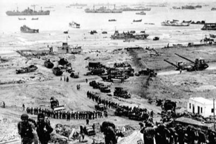 A l’aube ce jour-là, une armada de 4266 navires de transport et 722 navires de guerre s'approche des côtes normandes. Elle s'étale sur un front de 35 kilomètres et transporte pas moins de 130 000 hommes, Britanniques, Étasuniens ou Canadiens pour la plupart. Plus de 10 000 avions la protègent.