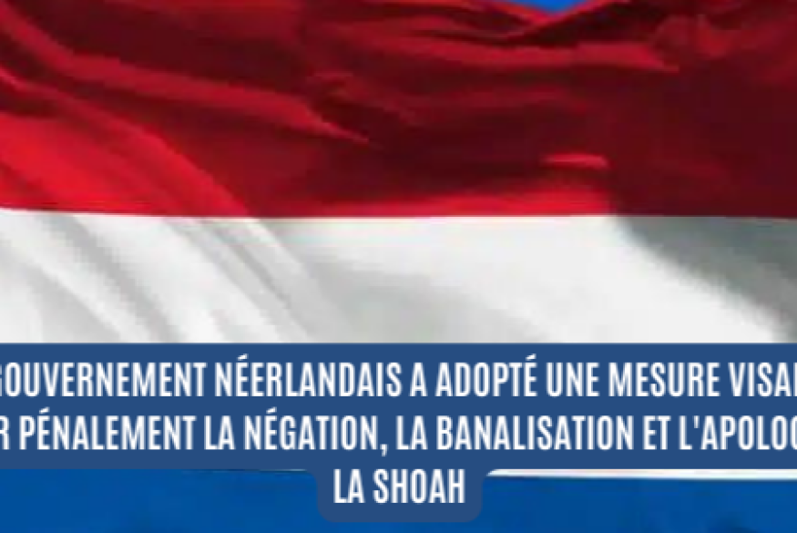 Le gouvernement néerlandais a adopté une mesure visant à punir pénalement la négation, la banalisation et l'apologie de la Shoah, ainsi que d'autres génocides.