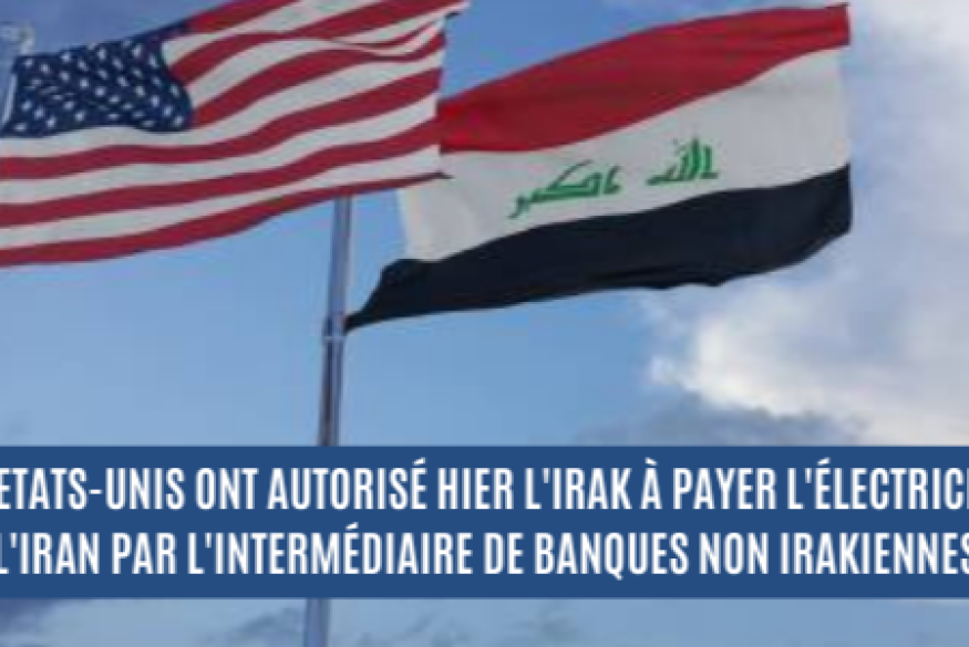 Le secrétaire d'État Antony Blinken a signé une dérogation de 120 jours en matière de sécurité nationale permettant à l'Irak, qui dépend fortement de l'électricité iranienne, de déposer ces paiements dans des banques non irakiennes situées dans des pays tiers plutôt que sur des comptes restreints en Irak.
