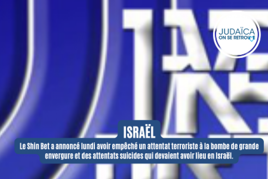 Le Shin Bet a annoncé lundi avoir empêché un attentat terroriste à la bombe de grande envergure et des attentats suicides qui devaient avoir lieu en Israël.