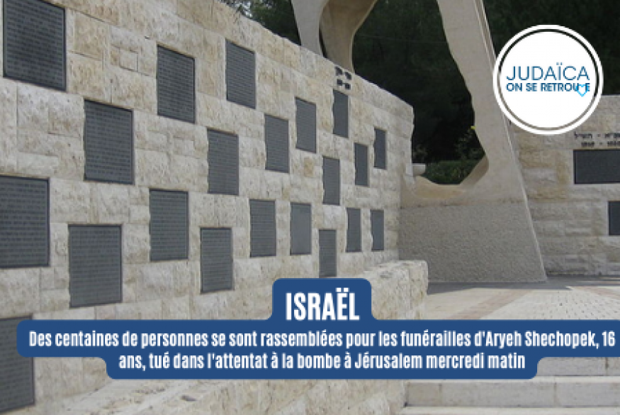 Des centaines de personnes se sont rassemblées pour les funérailles d'Aryeh Shechopek, 16 ans. Ce jeune israélien originaire du Canada a été tué dans l'attentat à la bombe à Jérusalem mercredi matin.