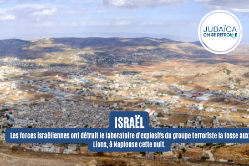 Les forces israéliennes ont détruit le laboratoire d'explosifs du groupe terroriste la fosse aux Lions, alors que des affrontements armés ont éclaté à Naplouse cette nuit.