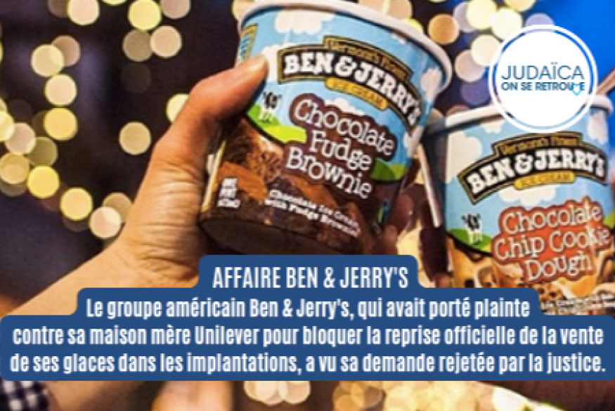La société n'a "pas réussi à démontrer" que la transaction lui causerait "un préjudice irréparable", selon la décision d'un juge new-yorkais consultée par l'AFP. Elle avait décidé en juillet 2021 de cesser de distribuer ses glaces dans les zones en question, estimant que ce n'était pas"compatible" avec ses "valeurs". Mais le détenteur de licence de la marque en Israël, Avi Zinger, avait contrevenu à ces directives en continuant de distribuer dans les implantations les glaces Ben & Jerry's produites par son usine en banlieue de Tel-Aviv.