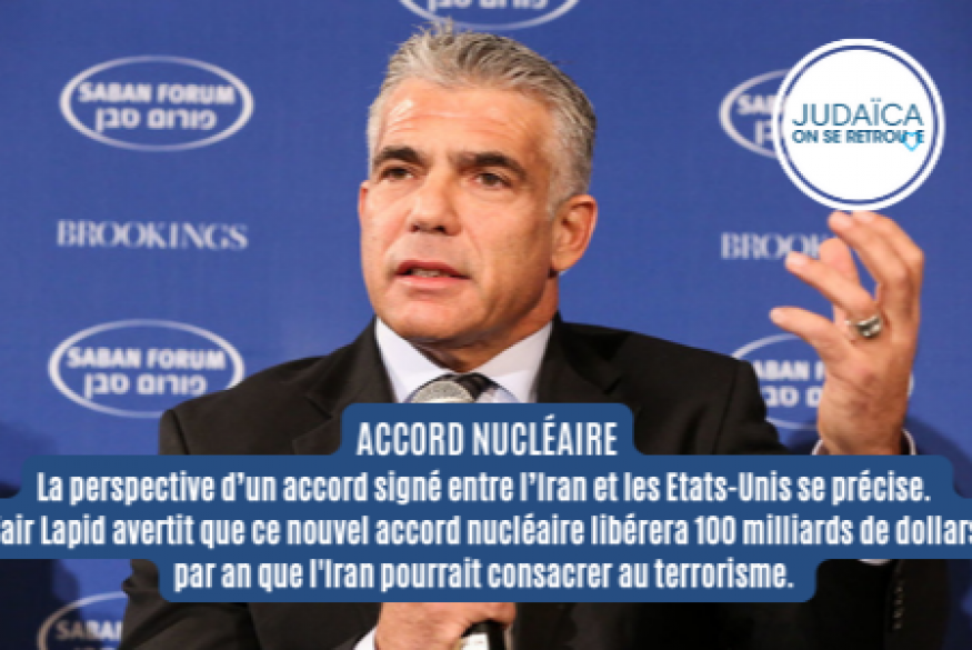 Le Premier ministre Yair Lapid a prévenu mercredi que le président américain Joe Biden ne respecterait pas son engagement d'empêcher l'Iran de développer une arme nucléaire s'il signait l'accord sur l'Iran en l'état, même s’il a rappelé sa confiance dans le président américain et l’amitié qui lie Israël et les USA.