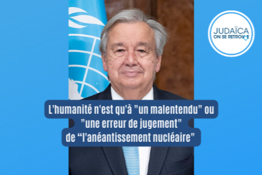 L'humanité n'est qu'à "un malentendu" ou "une erreur de jugement" de l'"anéantissement nucléaire", a mis en garde lundi le secrétaire général de l'ONU, estimant qu'un tel "danger nucléaire n'(avait) pas été connu depuis l'apogée de la guerre froide".