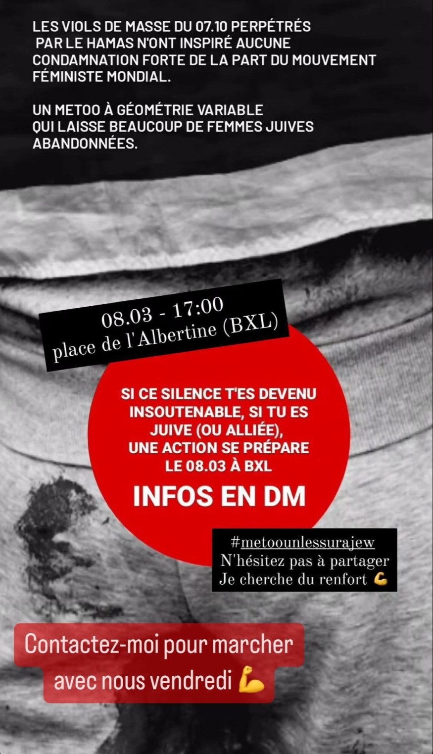 Le groupe dénoncera un MeToo à géométrie variable qui laisse beaucoup de femmes juives abandonnées et le fait qu’aucune condamnation de la part du mouvement féministe mondial n’ait été prononcé.