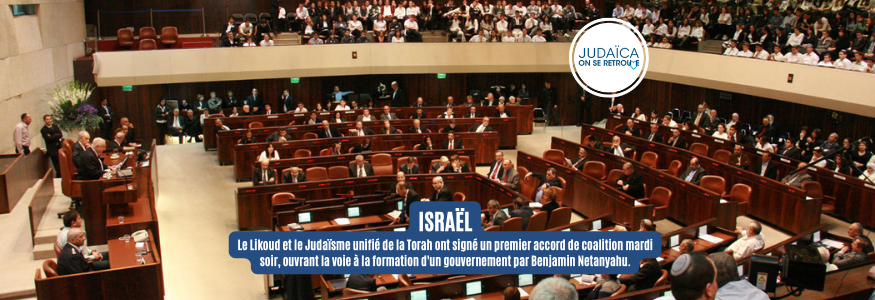 Le Likoud et le Judaïsme unifié de la Torah ont signé un accord de coalition préliminaire mardi soir, ouvrant la voie à la formation d'un gouvernement par Benjamin Netanyahu.